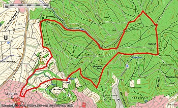 Der längste der Liebloser Wanderwege ist mit einer Eule gekennzeichnet. Für die fast elf Kilometer sollte man etwa drei Stunden einplanen. Mit dem Schmetterling geht es auf den Sommerberg zu „Lothars Bank“ und mit dem Schnepfenweg, der vom Gettenbacher Weiher startet, zum „Gelnhäuser Tor“. Dort betritt man den ehemals fürstlichen Wald. Durch alte Buchenbestände erreicht man das nächste Tor, an dem man wieder in den Gelnhäuser Stadtwald gelangt. An der Kuhruh, an der die Gelnhäuser Sänger früher den ersten Mai feierten, bergab bis zum Grenzweg. Dort rechts ab erreicht man bald den „Steinernen Tisch“, an dem reisende Händler ihre Kiepen zur Pause bequem abstellen konnten. Dann trifft man wieder auf den Schmetterling, mit dem es zum Waldschwimmbad geht, von dort weiter mit Keiler und Specht zurück zum Ausgangspunkt.
