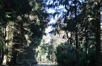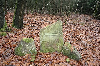 Ein wenig weiter links liegt im Wald am „Franzosenhau“ der Gedenkstein für den von Wilderern getöteten Förster Heinrich Nieß. Rechts an der großen Wiese vorbei biegt man am Ende rechts ab. Nach einer Weile passiert man einen Grenzstein mit der Zahl 18. Dieser würde vom Fürsten gestellt, um die Gettenbacher Forstreviere Nord und Süd voneinander abzugrenzen. An der Strackerschneise, dem direkten Weg, rechts ab steigt man durch den Altenjagen wieder bergab und erreicht das Tor am Pumpenhaus. Über den Hinweg geht es zurück zum Parkplatz.