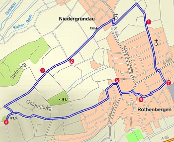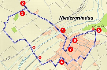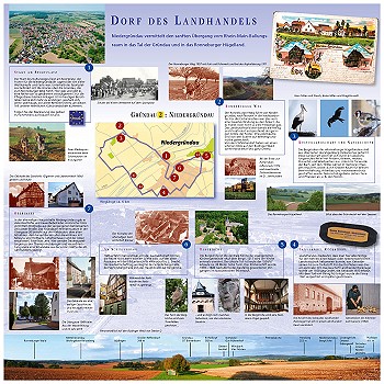 Auf dem rund sechs Kilometer langen Rundweg durch die Gemarkung und den Ortsteil Niedergründau werden auf sieben Schautafeln Informationen zu Geschichte, Natur und Landschaft gegeben.