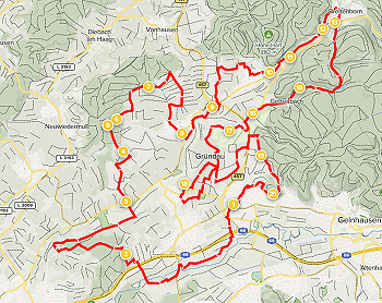 Hierbei handelt es sich um die von Hannes Schulz ausgearbeitete Wanderstrecke zum Jubiläum 50 Jahre Gründau 1972-2022 mit dem Arbeitstitel Gründau50. Es geht einmal rund um das Gemeindegebiet, wobei alle 7 Ortsteile berücksichtigt werden.