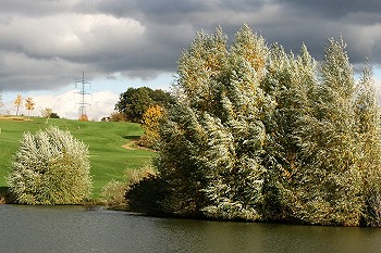 Der „Ahornweg“ führt jedoch weiter geradeaus bis zum Waldrand. Am Waldrand rechts bieten sich einige Bänke an, von denen aus man den Blick bis zur Frankfurter Skyline schweifen lassen kann. Am nächsten Weg rechts durch den Wald erreicht man wieder den Golfplatz. Auf diesem Stück finden sich auch viele Ahornbäume, denen der Weg seinen Namen verdankt.